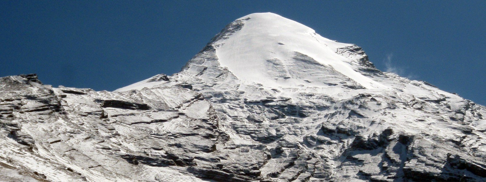 The high camp is established at 5,400 m on the South-West Ridge shoulder, where snow typically persists from late November to the end of March. From here, a well-defined ridge leads to the final steep snow slope, which is manageable for climbers. The descent follows the same route back to the base.